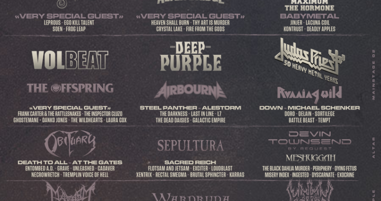 Deftones, Ego Kill Talent, Frog Leap, Incubus, Leprous, Opeth, Soen, Danko Jones, Frank Carter & The Rattlesnakes, Ghostemane, Laura Cox, The Inspector Cluzo, The Offspring, The Wildhearts, Volbeat, Abbath, Mayhem, Mephorash, Numen, Primordial, Rotting Christ, Seth, The Great Old Ones, At The Gates, Cadaver, Death Dta, Entombed A.d., Grave, Necrowretch, Obituary, Unleashed, Asg, Baroness, Black Mountain, Ecstatic Vision, Elder, Electric Wizard, Greenleaf, Om, Witchcraft, Body Count, Dog Eat Dog, Higher Power, In Other Climes, Powerflo, Slapshot, Suicidal Tendencies, Youth Of Today