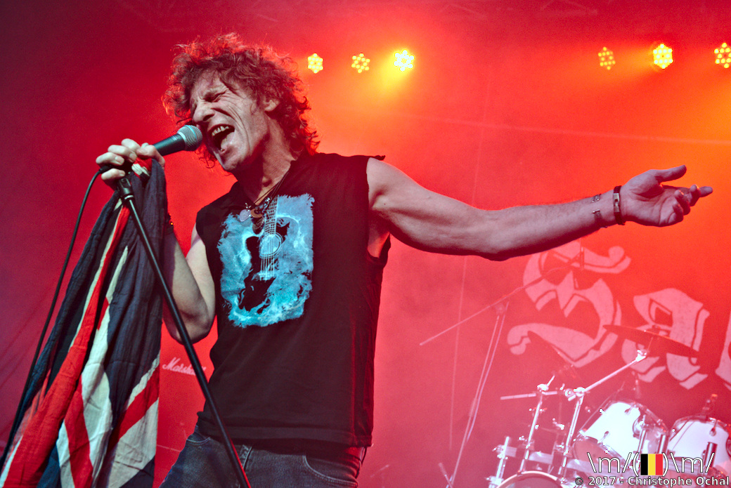 Terug naar de jaren 80 met Tysondog! Old School NWOBHM dat als een wervelwind over het podium waait met de ene gitaar solo na de andere. Een sterke show, zeker als je beseft dat vocalist Clutch Carruthers afwezig was. Invaller van dienst was Bill van de franse band Gang en voor slechts enkele weken bij de band te zijn deed ie dat verdomme niet slecht. Niet altijd even toonvast, maar wat hij ontbrak in stem maakte ie goed in enthousiasme.